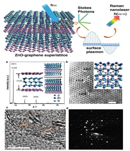 深圳大學阮雙琛教授團隊采用空間限域生長法合成了一種新型石墨烯基超晶格材料,這種石墨烯基超晶格可以在從可見光到近紅外光波段較寬的波長范圍激發出表面等離子體,光激發該超晶格材料可以得到波長可調的拉曼納米激光。該拉曼納米激光具有無閾值、可室溫操作、激光波長可調、激光波長覆蓋范圍廣(波段從可見光到近紅外光)等特點,有望在納米光技如生物醫學成像等方面取得應用上的新突破。有望在納米光技術如生物醫學成像等方面取得應用上的新突破。研究成果近期以“A Thresholdless Tunable Raman Nanolaser using a ZnO–Graphene Superlattice(基于氧化鋅-石墨烯超晶格的無閾值拉曼納米激光)”為題發表在Advanced Materials上。