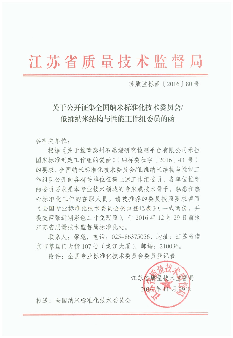 目前江蘇省質(zhì)監(jiān)局網(wǎng)站上正在公開(kāi)征集全國(guó)納標(biāo)委低維納米結(jié)構(gòu)與性能工作組委員。截止日期:2016年12月29日。