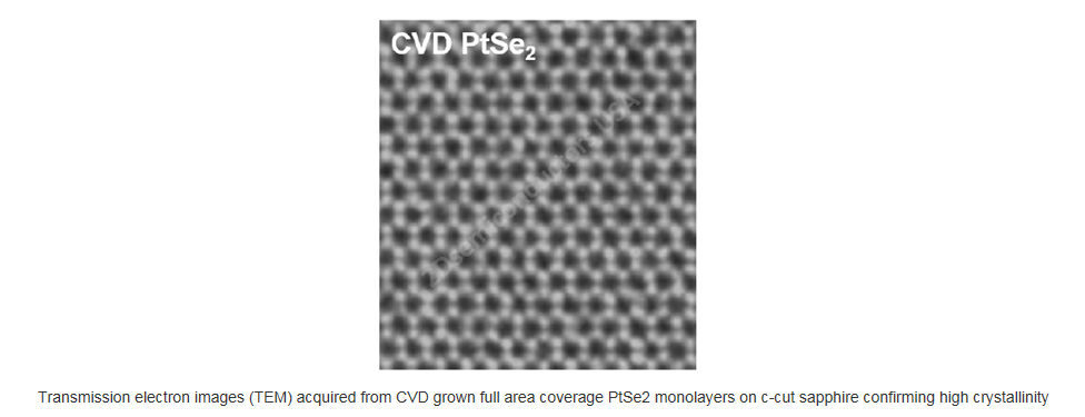 This product contains full area coverage PtSe2 layers (single/multi) on c-cut sapphire substrates. Sample size measures 1cm in size and the entire sample surface contains PtSe2 sheets. Synthesized full area coverage PtSe2 is highly crystalline, some regions also display significant crystalline anisotropy.