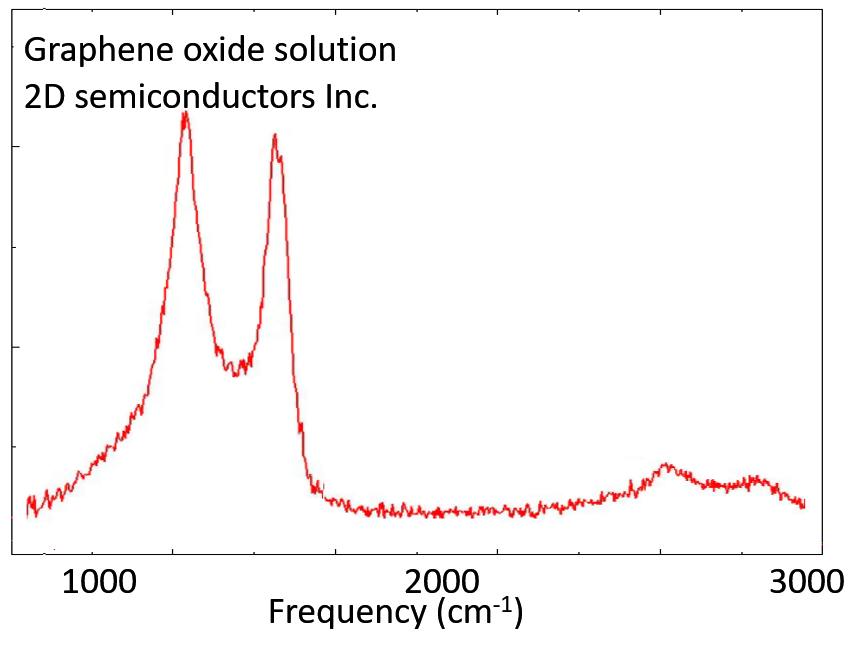 Semiconductor analog of graphene: Graphene oxide has been synthesized at our R&D facilities using modified reaction Hummer technique in water dispersant solution. Growth technique emphasizes on minimizing the defect density to yield optically active material and increasing the average grain size (flake size). Unlike many other graphene oxides, this product is optically active and is ready for 2D semiconductor research. Each growth batch has been characterized by Auger electron and x-ray photoelectron spectroscopy to determine the stoichometry; Raman, PL spectroscopy, and optical absorption for optical properties tests; AFM measurements for the atomic flatness. Product displays PL at ~2.5 eV, sub-bands at 2.2 and 2.0 eV, and broad defect lines at 1.7 eV. Raman spectroscopy measurements yield D, G, 2D, and G+D peaks. Samples come fully saturated with oxygen and the optical properties of the material can be tuned by simple heat treatment. The product is ideal for yielding monolayer onto various substrates within 2-10 minutes. The concentration of monolayer solution is fixed at 92 mg/L.
