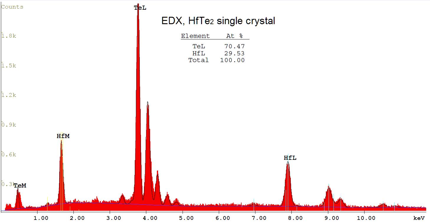 Stoichiometric analysis of a single crystal by Energy-dispersive X-ray spectroscopy (EDX).