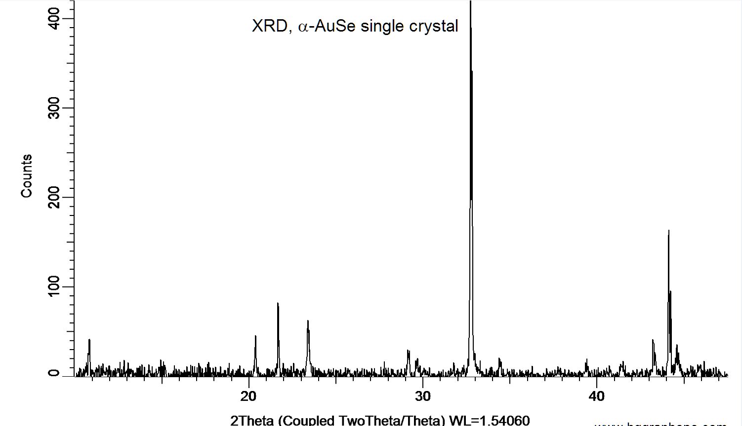 Powder X-ray diffraction (XRD) of a single crystal AuSe. X-ray diffraction was performed at room temperature using a D8 Venture Bruker.